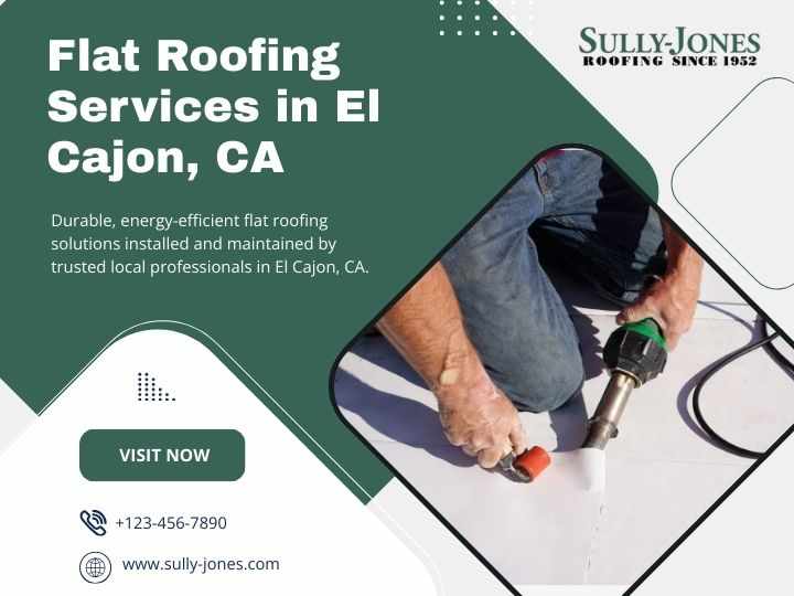 Expert flat roofing El Cajon CA services from Sully Jones provide durable, energy-efficient flat roof installation, repair, and maintenance for commercial and residential properties. Trust our experienced team for high-quality workmanship, reliable protection, and long-lasting roofing solutions tailored to your needs.